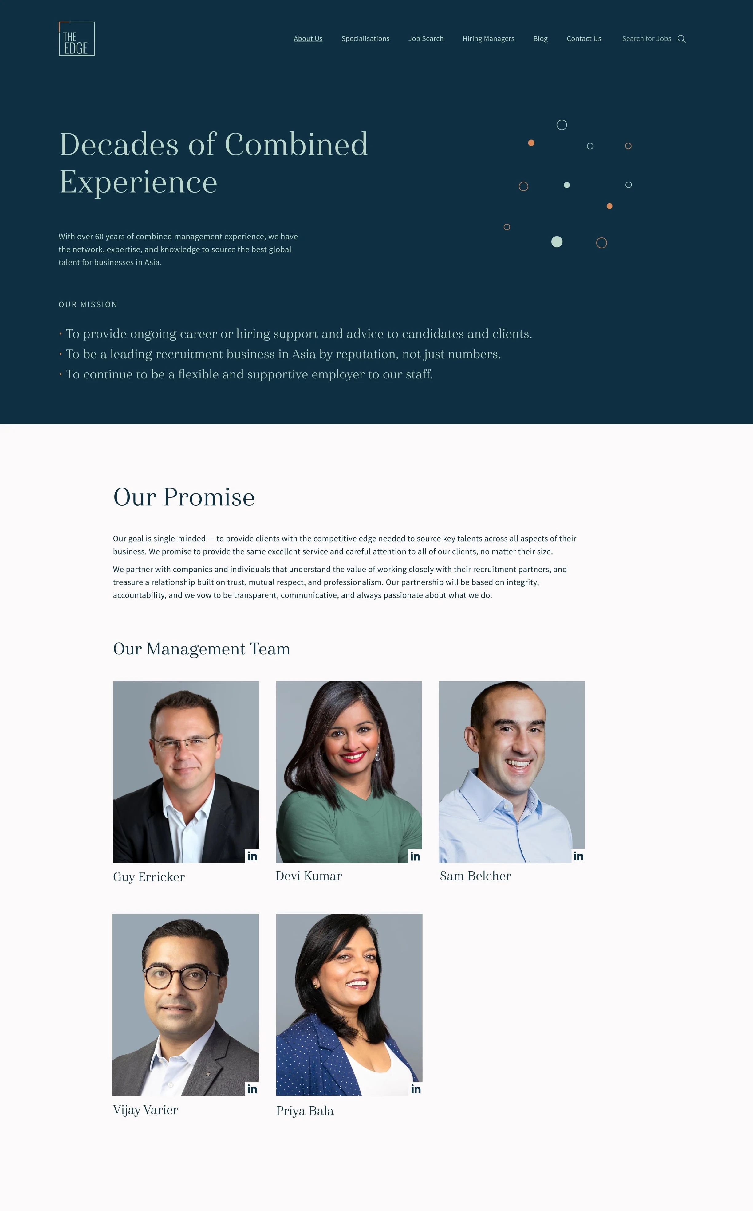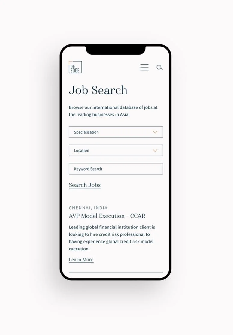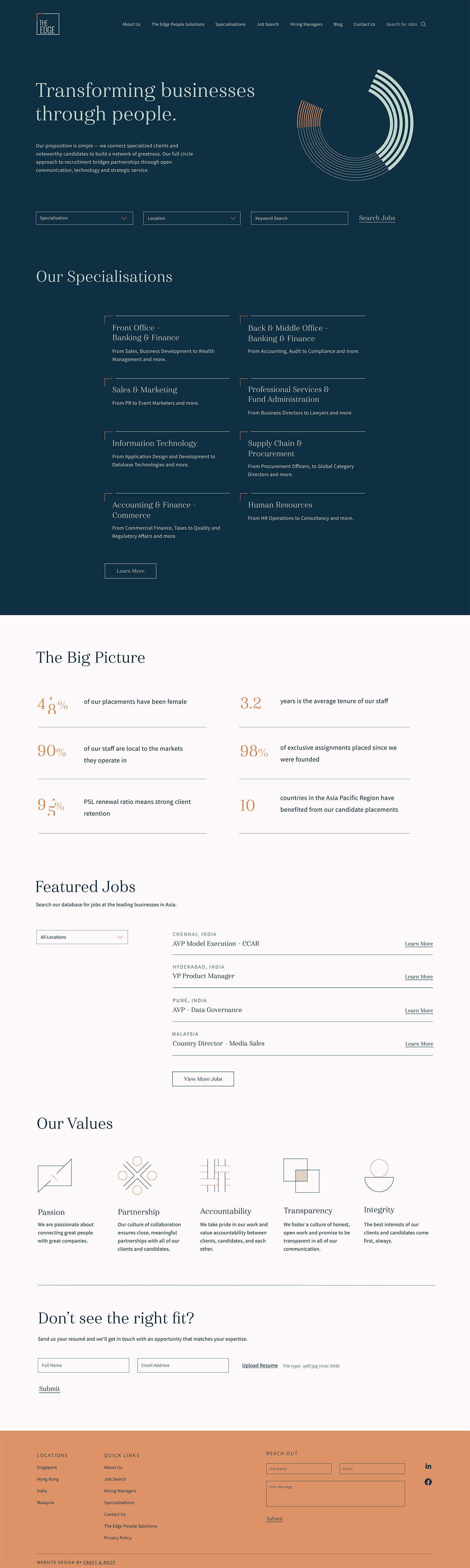 The Edge is a leading recruiting firm specializing in the Asian market. Their strategic, “full circle” approach focuses on partnerships built to last for the long term. The Edge approached wanted a slick look and feel for their new brand that matched the cutting edge nature of their work and a user-friendly website for both candidates and hiring managers.